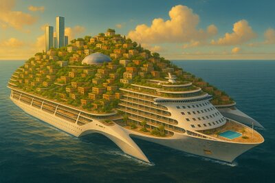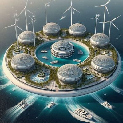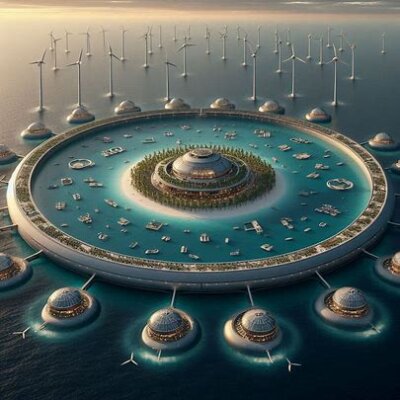 7 Mrd. EURO → ca. 30000 Einwohner, 50 km/h 31 mph 27 Knoten mit Wellen-Wind-Sonnen-Strom!