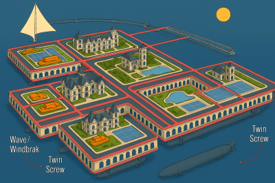 Wir bauen für Euch auch Objekte mit sogar ZEHNFACH besserer Lebensqualität. Auch das unsinkbare sicherste NonPlusUltra auf dem Wasser: Privat-Staat-Ocean: